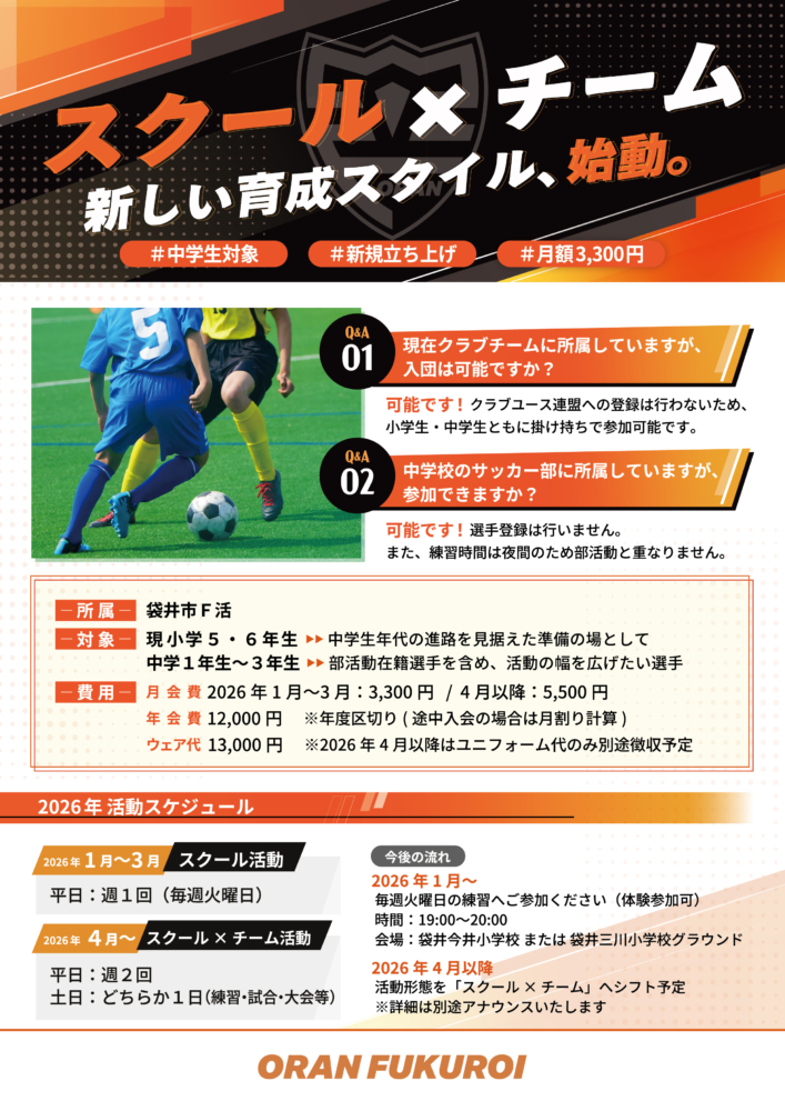 部活動や他クラブに所属している選手も参加可能とし、