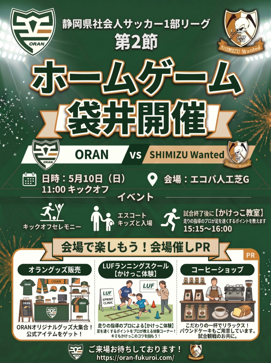 2026静岡県社会人サッカー1部リーグ ホームゲーム開催のお知らせ